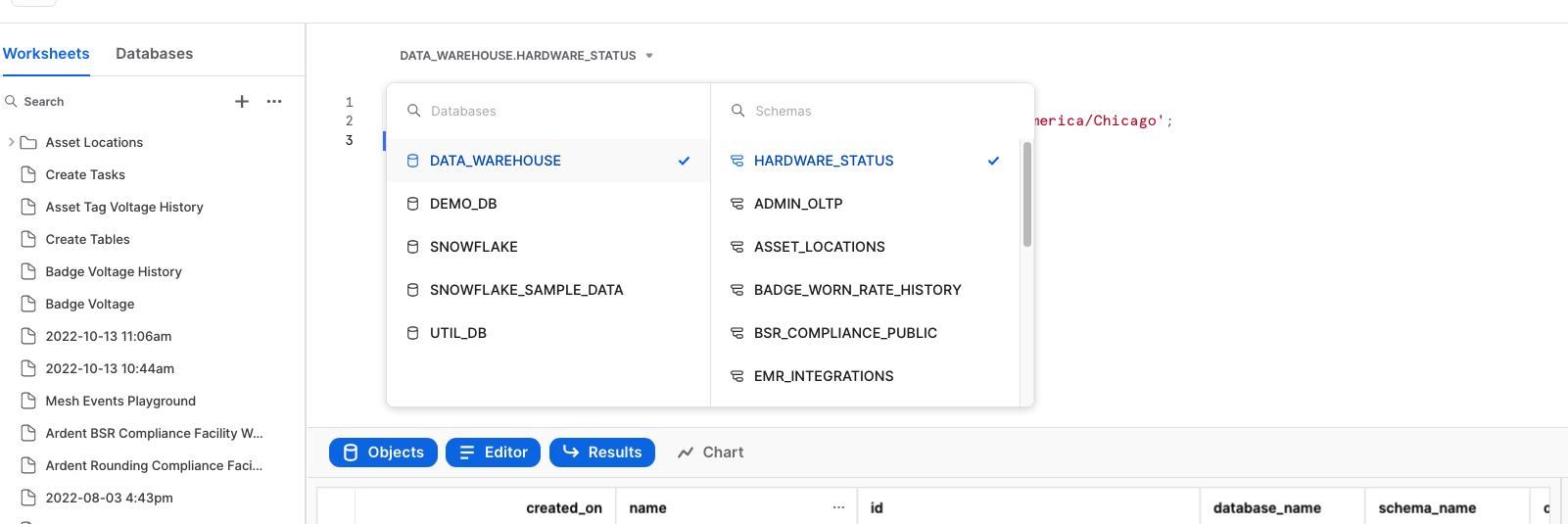 Some of our data, including hardware status data, is mutable. As such, we need a mechanism for capturing point-in-time data to do things such as analyze voltage drainage over time. Below is the process to create a task in Snowflake that automates the capture of this point in time data:
